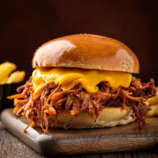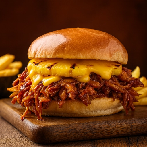 180g pulled pork, queijo, abacaxi grelhado e molho BBQ