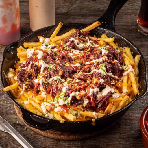 Batata com queijo e pulled pork