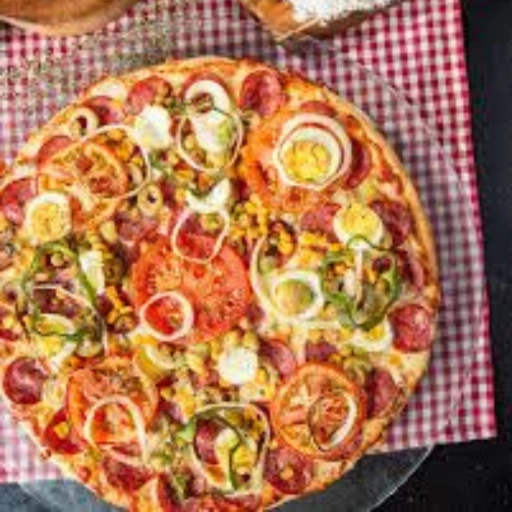 Cebola, pimentão, tomate, ovo, queijo e molho de tomate