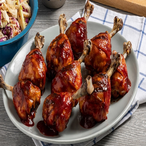 Coxas de frango defumadas por 3 horas com tempero caseiro e molho BBQ