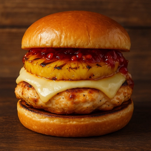 180g frango, queijo, abacaxi grelhado e geléia de pimenta